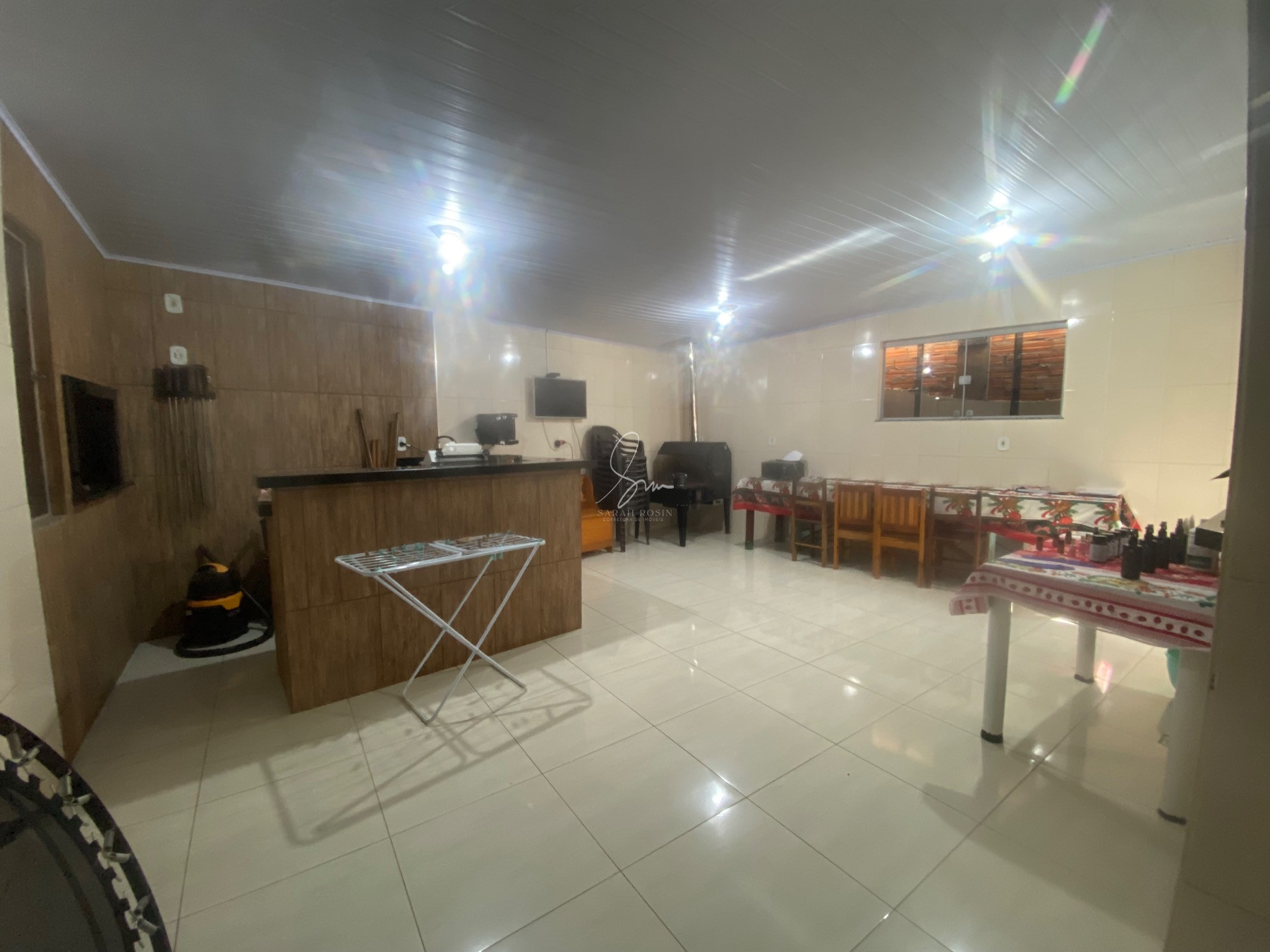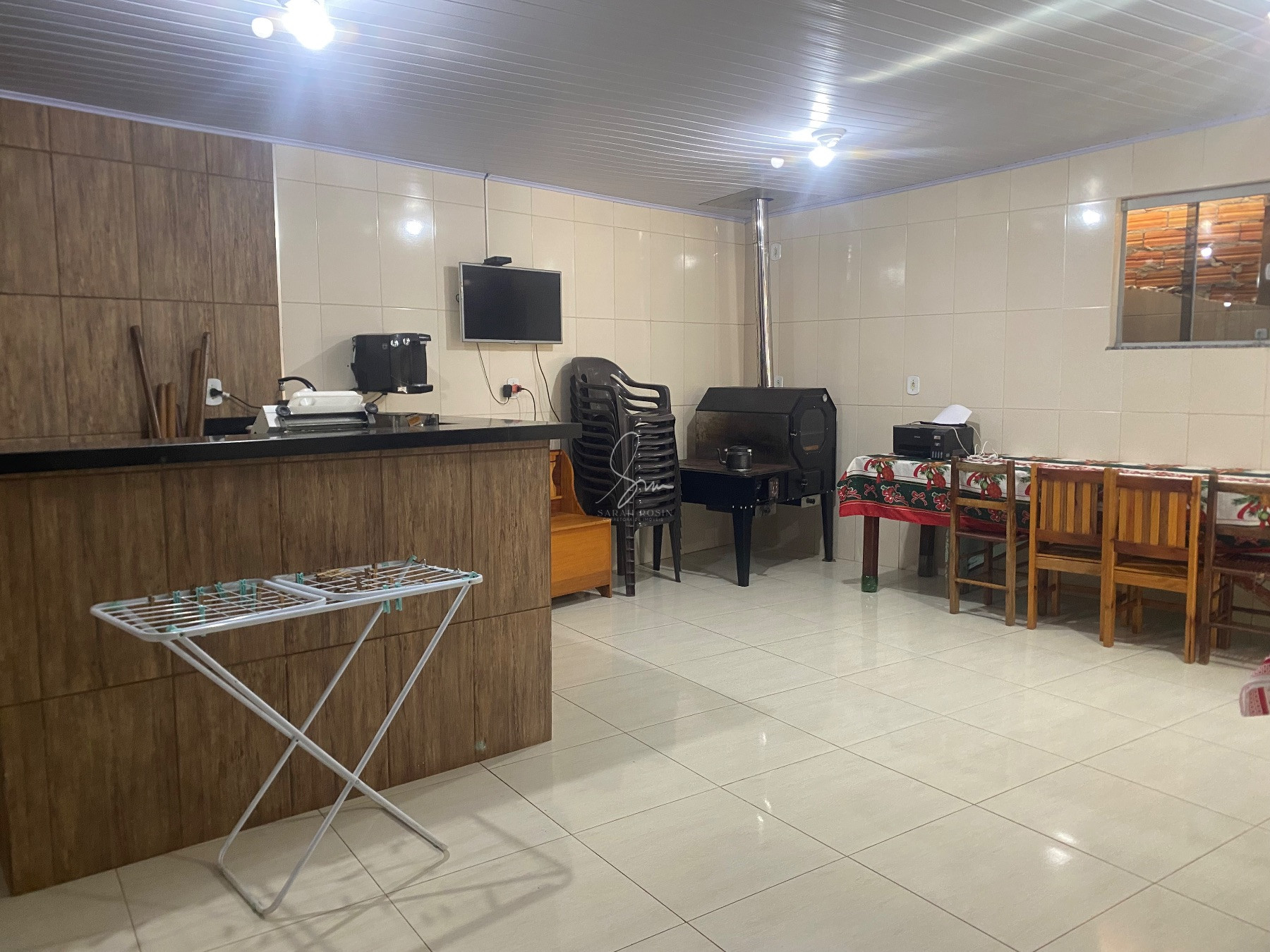 Área de festas equipada com borralho e churrasqueira